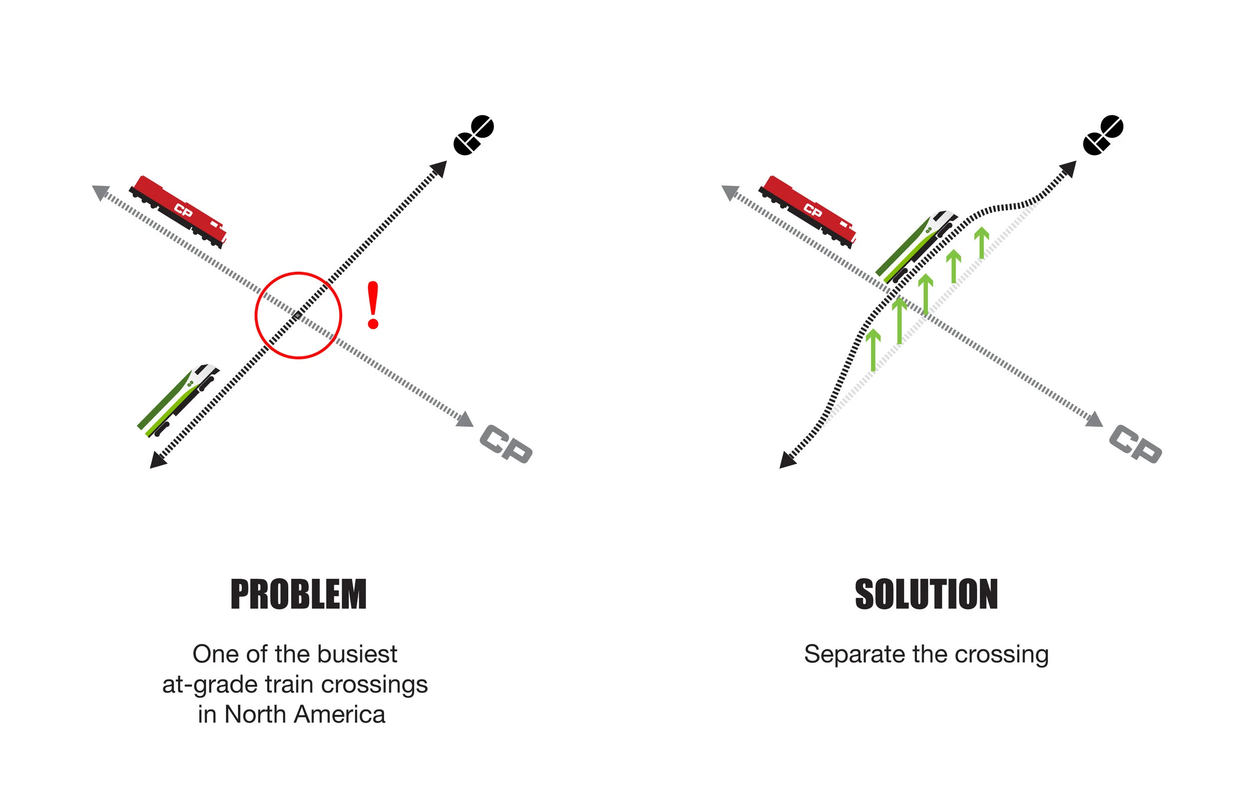The Davenport Community Rail Overpass will replace the ‘Davenport Diamond’, one of the busiest train crossings in North America where CP Rail freight trains intersect with GO commuter trains on the Barrie corridor. The proposed elevated railway line running between Bloor Street West and Davenport Road opened up new land below the overpass, whose design invents a unique multi-modal space for the use and enjoyment of a local and regional public in Toronto. It anticipates and protects a public realm, while establishing connections to the Railpath, Green Line, Bloor GO Station, and Lansdowne TTC Station, and plans for the private and public adjacencies of future development.