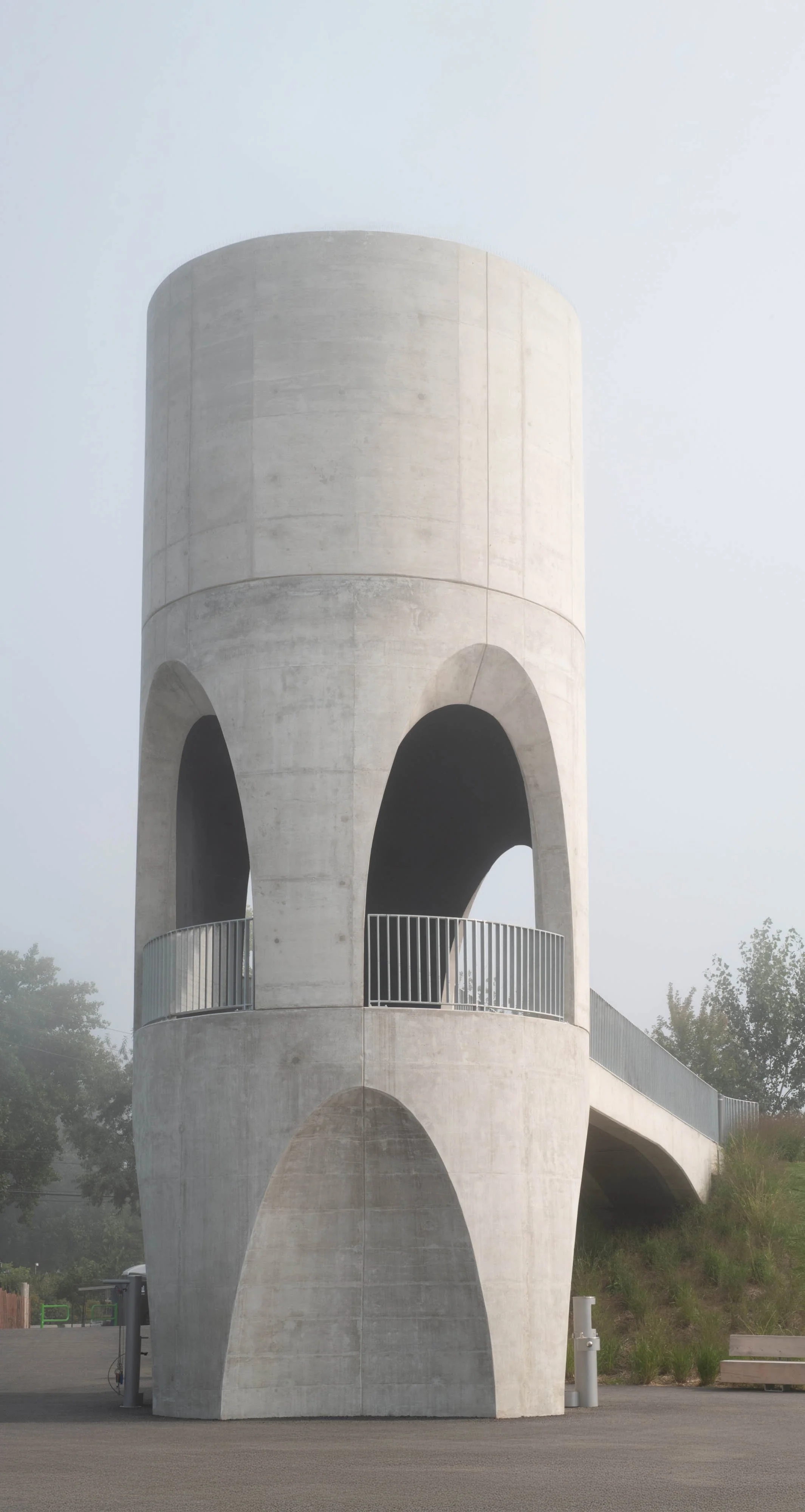 The structure references the site’s industrial past and its surrounding context through its unique silo form. Strategically positioned at the convergence of the park’s pathways, the Leslie Lookout Tower acts as an anchor, a visual marker, and a meeting point for park visitors.