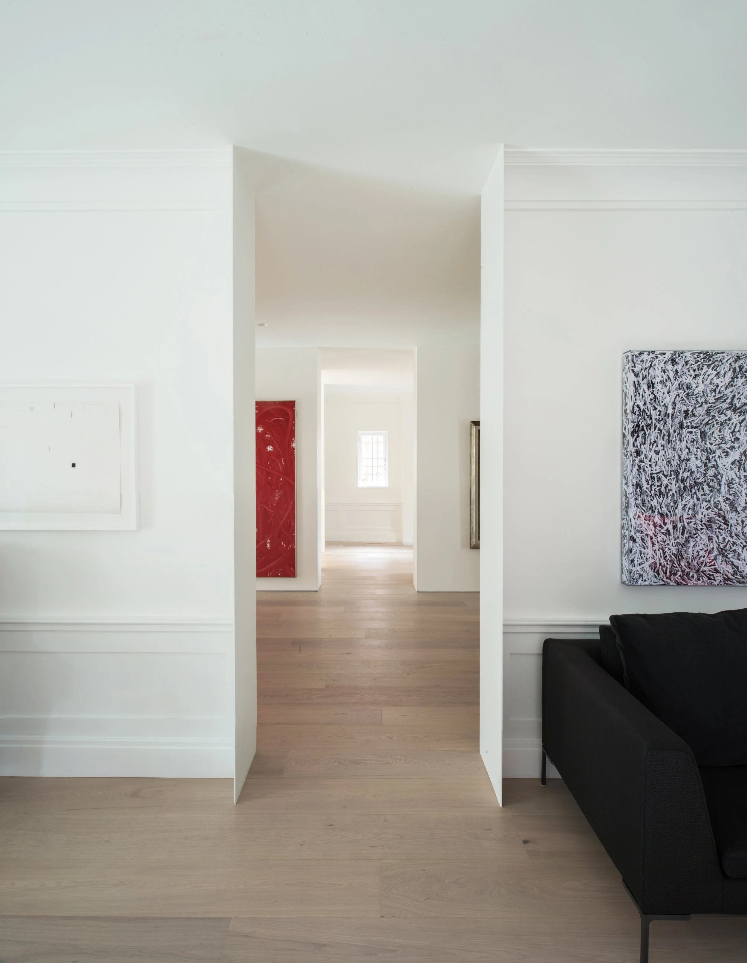 A minimal yet radical architectural strategy transforms a landmark Edwardian residence in South Rosedale. The challenge of modernizing the historically designated Street House, designed by noted architect William Alexander Langton for Mrs. Elenor Street in 1908, began with a single, surgical gesture that would unlock the constricted, formal plan to become a spatially flowing and light-filled home suited to contemporary family life. Responding to the exceptional quality of original detailing, two methods were developed to reconcile old and new: shearing (where old and new are juxtaposed and contrasted with sharp delineation) and co-existence (the merging of and co-existence of modern and historic details where historic merit calls for respectful reinstatement).